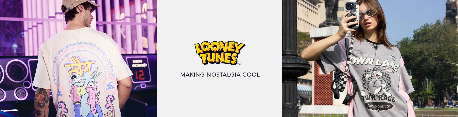 Step up your casual game with our Looney Tunes t-shirts in relaxed and oversized fittings. Featuring iconic characters like Bugs Bunny and Daffy Duck, these tees bring a playful twist to your wardrobe. Soft, breathable fabric ensures all-day comfort, whether you're chilling at home or out with friends.