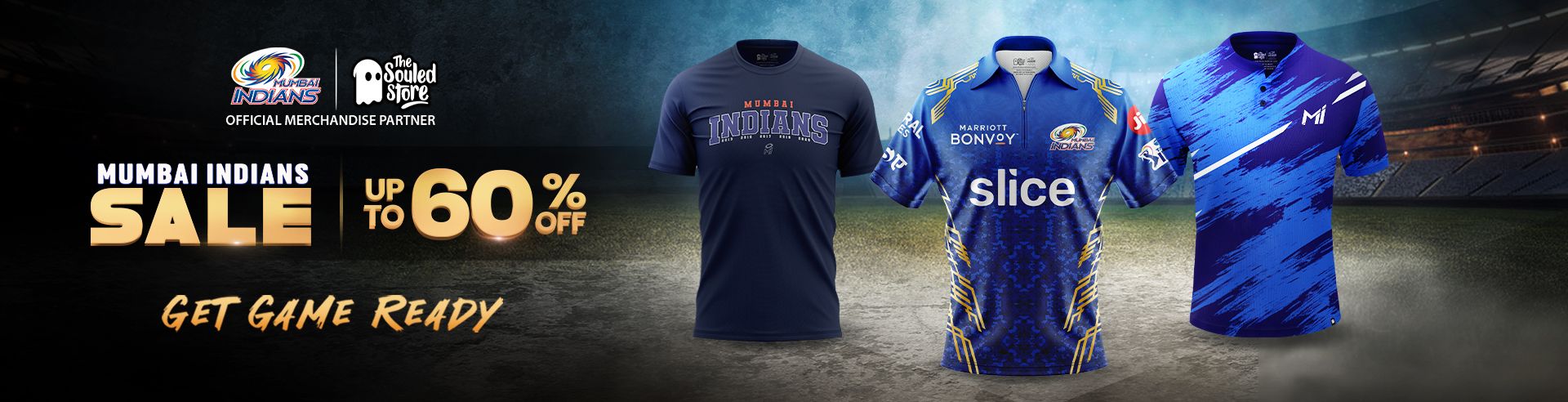 Join the MI Paltan by purchasing official Mumbai Indians jerseys, t-shirts, and other products from The Souled Store, which is only accessible online.